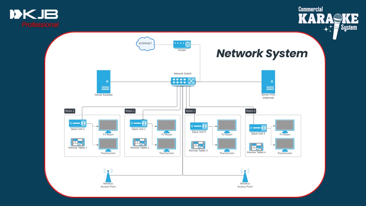 Server ini bisa melayani sampai 30 ruangan. Ini lebih praktis dan sederhana ketimbang misalnya kita punya 30 room memakai 30 mesin Queen KJB. Ini salah satu opsi yang bisa dipakai. Disini tim komersial KJB akan mensupport sampai pemasangan. Server ini akan diperkenalkan dan sudah didemokan di beberapa tempat komersial.