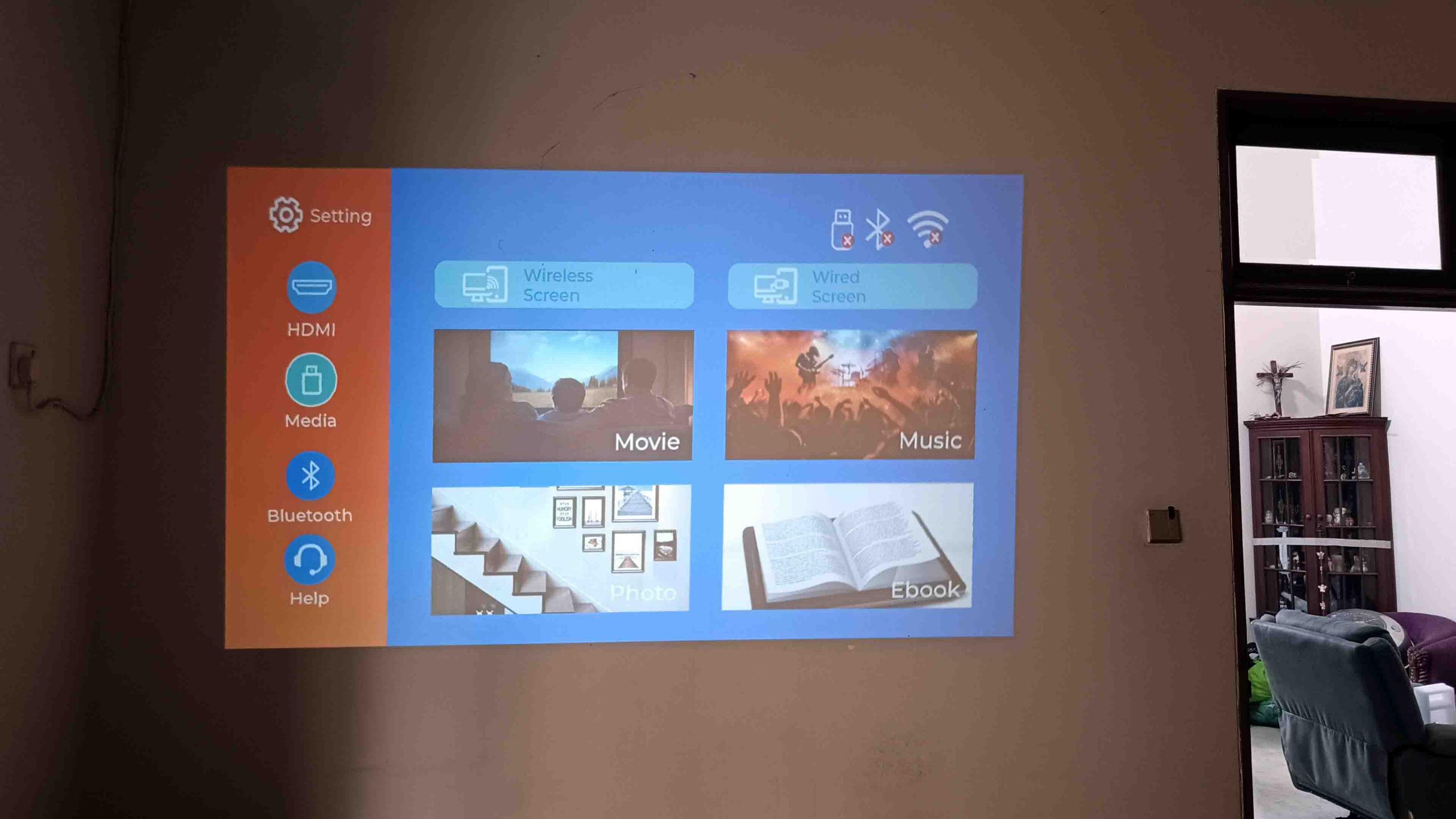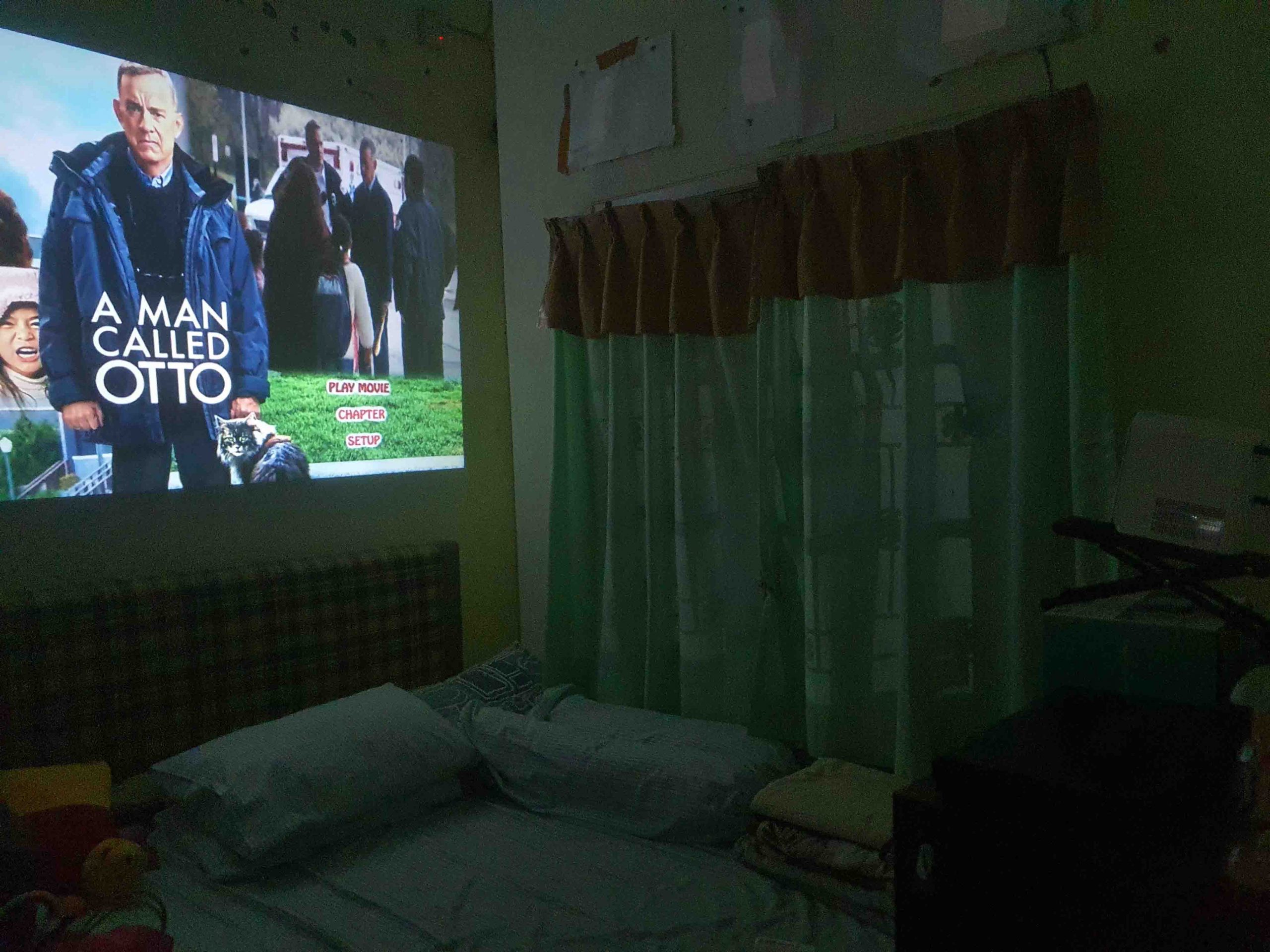 Minusnya, kipasnya cukup berisik walau saat kita memutar film, suara kipas tak sampai mengganggu. Lalu saat digunakan setelah 15 menitan, bodinya mulai menghangat. Kami coba putar sekitar 2 jam film A Man Called Otto, pemutarannya tetap berjalan smooth dan bodinya memang sedikit memanas. Ketiga, karena tidak ada dongle, maka untuk aplikasi dengan wireless (Wifi dan Bluetooth) anda perlu sedikit diajak ‘berkelana’ dahulu untuk bisa menyambungkan misalnya smartphone ke proyektor untuk bisa menayangkan video dari ponsel anda. Untuk fungsi Bluetooth ternyata fungsi ini untuk memutar musik, khususnya untuk fungsi Music pada fitur di tampilan utama proyektor ini. Tetapi yang cukup terasa bagi kami, suara proyektor ini tampil kurang keras pada volume tertingginya. Tetap, anda butuh speaker eksternal untuk lebih punya efek. Ambil saja speaker Bluetooth atau soundbar. Mau lebih hebat lagi tentu dengan amplifier/av receiver yang tersambung ke speaker eksternal.