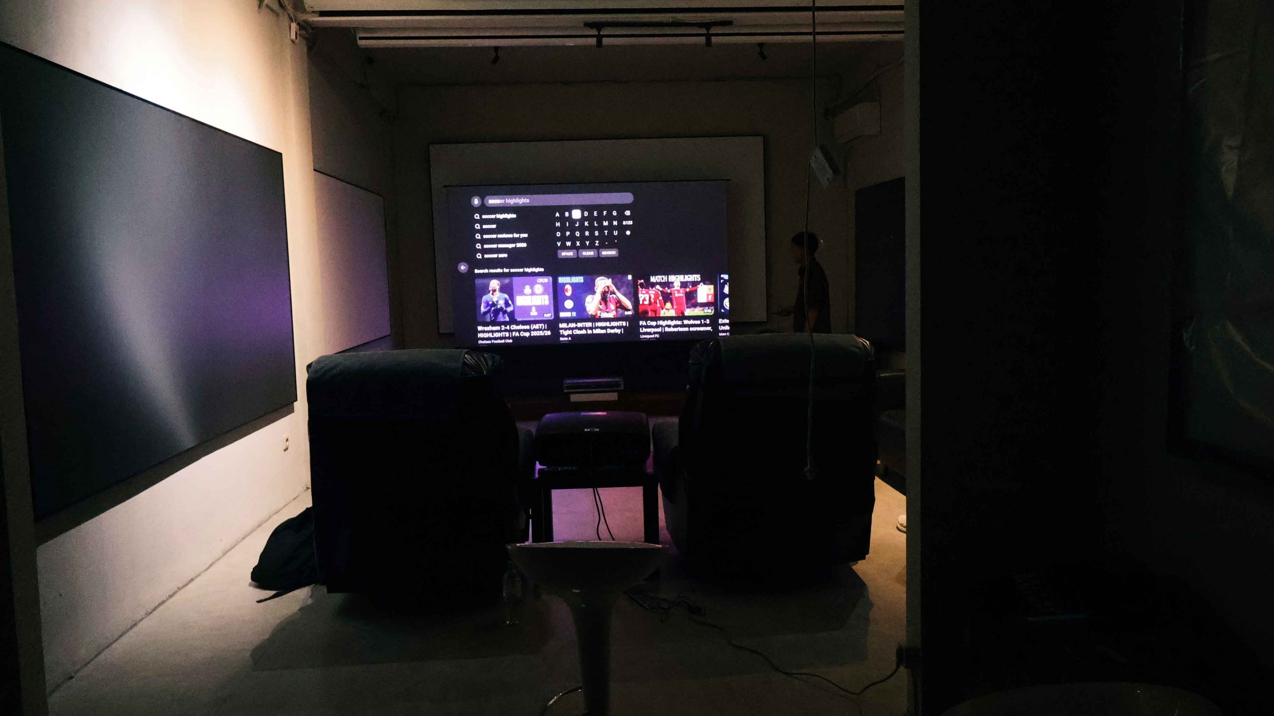 Soal ruangan, kami yakin kalau ruangan kecil pun, sekitar 3 × 4 meter cukup oke, tetapi yang minimal idealnya di di 4 × 6 meter atau lebih. Ukuran layar yang nyaman adalah di 100–120 inci untuk ruang kecil atau 120–150 inci untuk ruang home theater serius