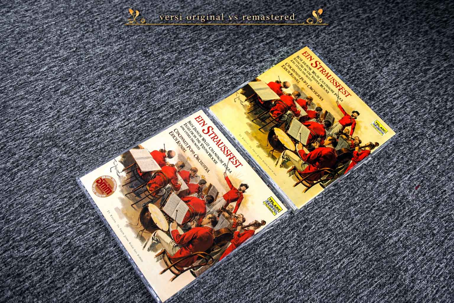 Kembali Yoga memutarkan album lain, yakni Strausfest, dimana dia memiliki versi re-issue dan asli. Beberapa rekaman ini adalah keluaran Living Stereo yang memiliki logo bergambar anjing ditengah setengah bulan. Kali ini kami merasa, versi re-issue lebih terasa rekaman elektronik (terlalu digital, alias agak lebih kering, kurang hangat ditelinga). Suara orang menyanyi kalah hidup dibandingkan yang asli. Akhirnya setelah lagu ini berakhir, terasalah, betapa soul keduanya berbeda. Kami coba baca kaver tanggal perilisan keduanya. Di versi non asli, ternyata ini merupakan versi re-issue yang dicetak ulang beberapa tahun lalu, sementara yang asli dibuat beberapa puluh tahun lalu.